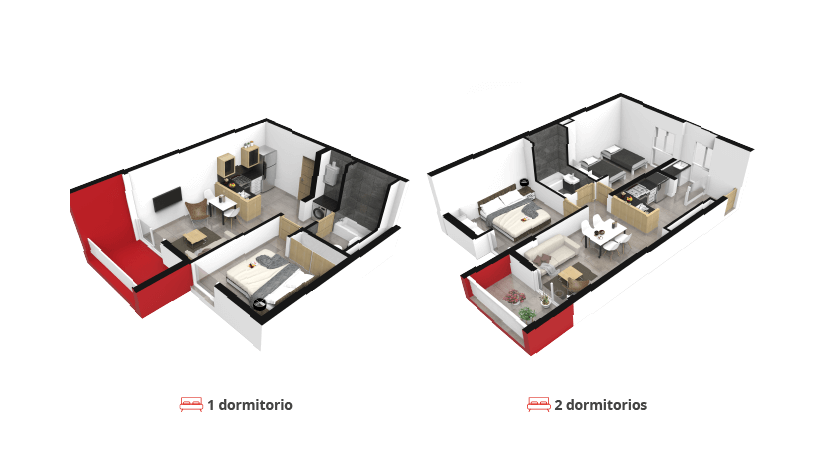 • 1 y 2 dormitorios